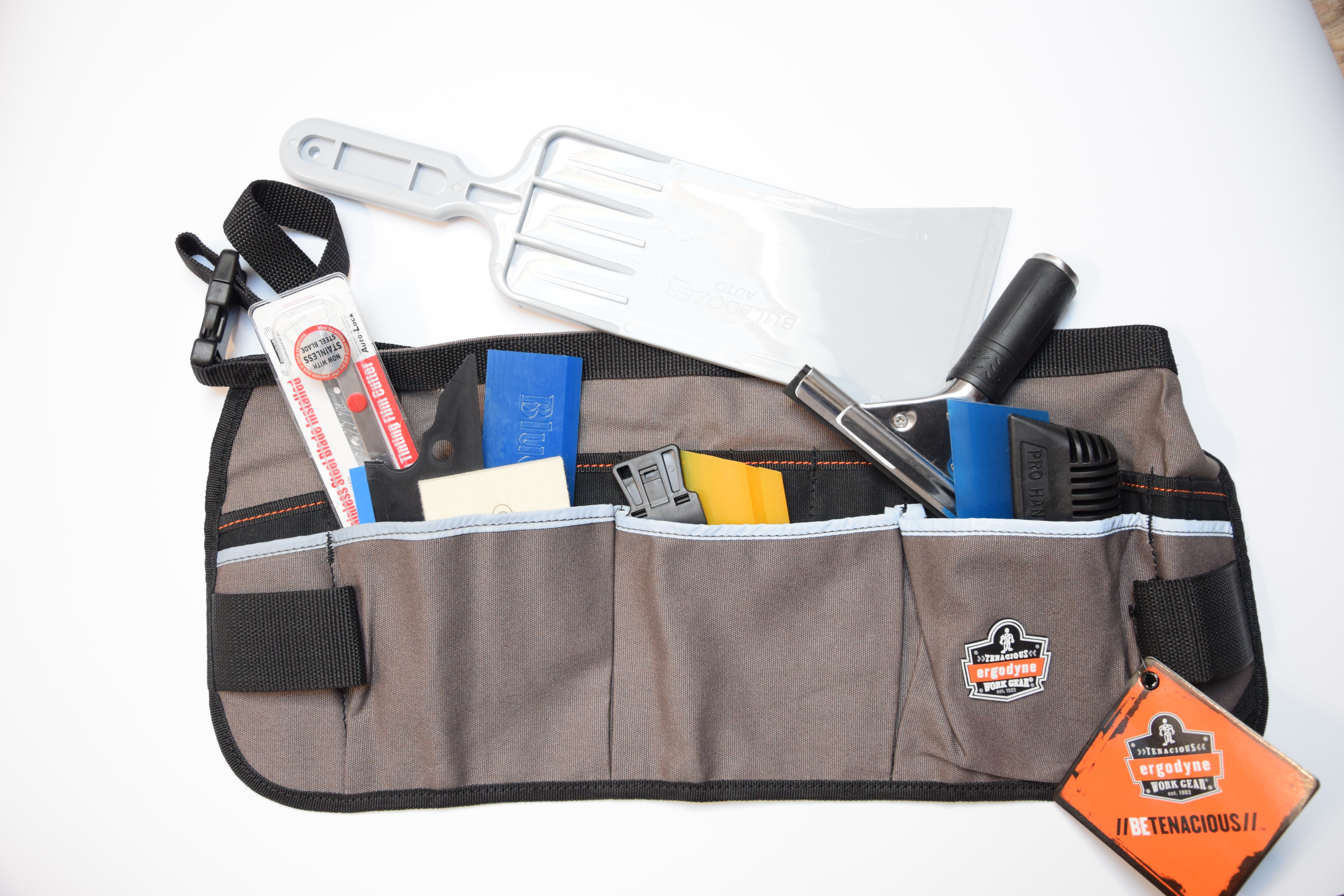 To doskonały organizer Twoich narzędzi. Dzięki niemu wszystkie niezbędne narzędzia znajdują się pod ręką. Usprawnia proces montażu folii różnych rodzajów. Ceniony i wykorzystywany przez wielu instalatorów.