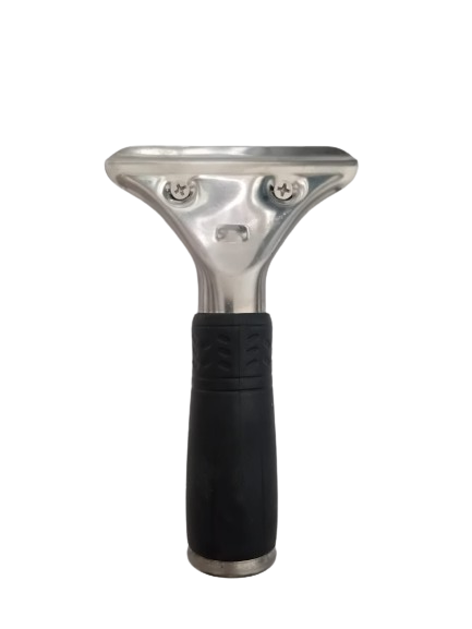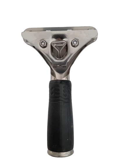 Pasuje do większości dostępnych na rynku wkładów rakli, jak również do szyny wymiennej z gumą do ściągaczek do szyb. Jest to solidny uchwyt, do którego montuje się wkład za pomocą dwóch śrubek. Szyna jest z kolei mocowana na klik klak, dzięki czemu możemy szybko ją wymienić i zmienić pozycję szyny w stosunku do uchwytu.